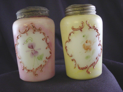 ANTIQUE MILK GLASS SHAKERS CALLED CARTOUCHE