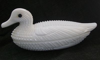 MILK GLASS ATTERBURY DUCK COVERED DISH