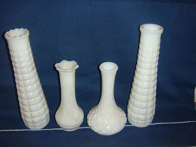 Title (ebay affiliate link): 4 Vintage Milk Glass Vases, 2 E. O. BROODY M-147 , 2 unknown