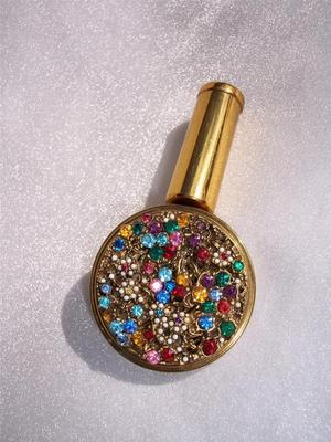 Title (ebay affiliate link): VINTAGE GOLD FOLDING JEWELED RHINESTONE MILK GLASS BEADS MIRROR LIPSTICK COMPACT