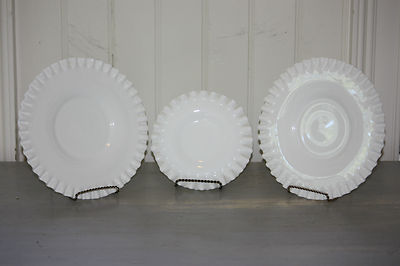 Title (ebay affiliate link): Fenton Milk Glass Hobnail 2 Footed Salad Plates/ 1 Bread Ruffled Crimped Edge