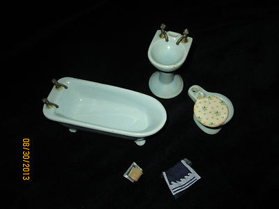 Title (ebay affiliate link): Vintage Doll House Bathroom Blue Ceramic Tub-Sink-Toilet & Paper-Towel Rack