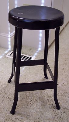 Title (ebay affiliate link): VINTAGE INDUSTRIAL ALUMINUM STOOL MID CENTURY MACHINE AGE CHAIR SEAT METAL BLACK