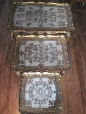Title (ebay affiliate link): Vintage Italian Florentine Nesting Tables Hollywood Regency White Gold