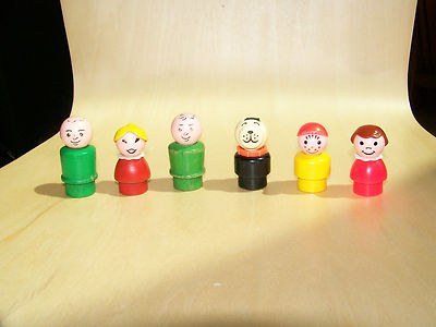 Title (ebay affiliate link): LOT 6 Vintage Fisher Price Little People Dog Hat Boy Mom Girl Boys Wood Plastic