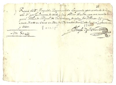 1743 Spanish Colonial document "RECEIPT" Peru 1743