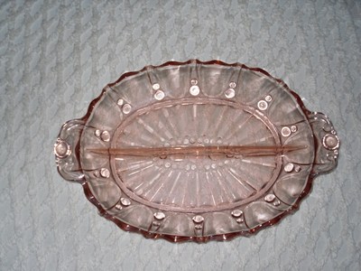 Title (ebay affiliate link): Pink Depression Glass Divided Dish Two Sections Oyster and Pearl