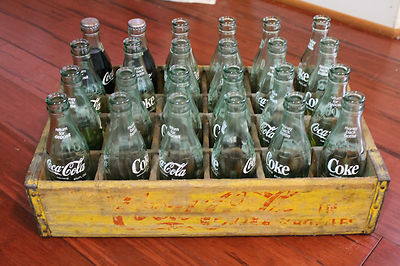 Title (ebay affiliate link): Vintage 1960s Yellow Coca Cola Wooden Crate with 24 Coca Cola Coke Bottles!