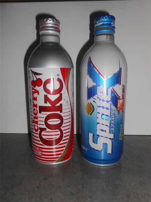 Lot of 2 Japan SPRITE X & CHERRY COKE Aluminum Bottles