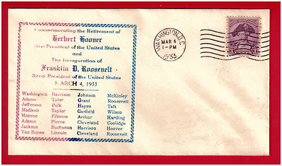 Title (ebay affiliate link): FDR Roosevelt Pres Inaugural Mar 4 1933 Washington DC Hoover Retirement Cover
