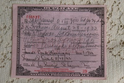 Old Prohibition WHISKEY PRESCRIPTION Pharmacy Medical Alcohol Rx Bar St. Louis