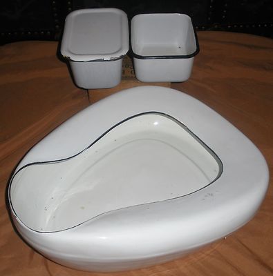 Title (ebay affiliate link): Vintage Porcelain Enamel Surgical Medical Bed Pan & Sterilizing Dishes Pans Dr's