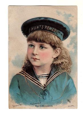 Title (ebay affiliate link): 1883 HUNT'S REMEDY Quack 'Cure-All' Trade Card NEW HAMPTON NH Child Sailor