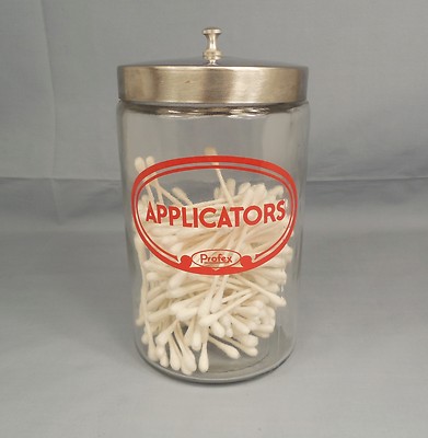 Title (ebay affiliate link): VINTAGE PROFEX MEDICAL/APOTHECARY "APPLICATORS" JAR WITH STAINLESS STEEL LID