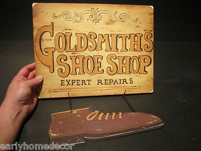 Title (ebay affiliate link): Primitive Vintage Antique Style, Wood Shoe Shop Folk Art Trade Merchant Sign