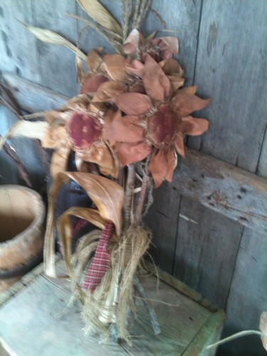 Title (ebay affiliate link): Primitive Grungy Sunflower Corn Leaves Bouquet Tuck Sitter