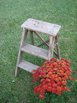 Title (ebay affiliate link): Vtg 23" Primitive Country Farm Wood Step Stool Folding Ladder Old Shabby Garden