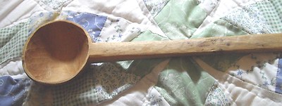 Title (ebay affiliate link): Vintage Wooden Ladle, appears hand chiseled, Long and Large with hanging hole