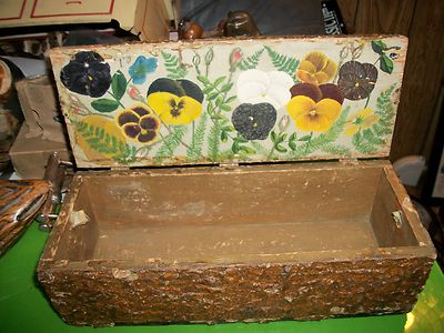Title (ebay affiliate link): ANTIQUE OLD WOOD BOX-ORIG. TO BOX HAND PAINTED FLOWERS-3 BRASS HINGES