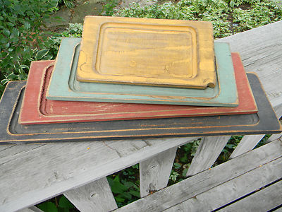 Title (ebay affiliate link): 4 set Primitive Rustic Pine Wood/Wooden Stacking/Nesting Trencher Bowl Trays USA