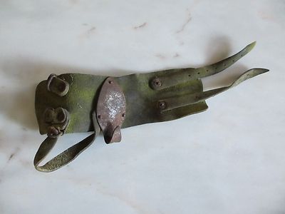 Vintage wrist brace leather Boss corn husker Farm work by hand Iron metal hook