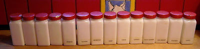 Vintage SET of 14 Milk Glass Spice Shaker Jars All have shakers and lids