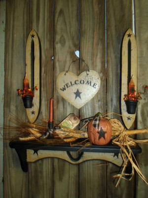 Title (ebay affiliate link): ~Primitive Decor~Wall Gathering~Crackled~Farmhouse~Sconces~Fall~