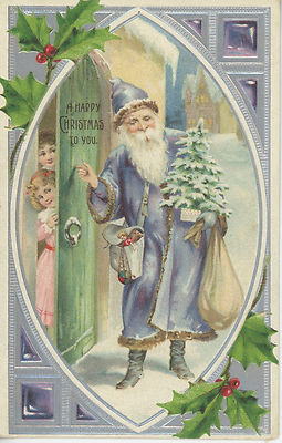 1907 Postcard Blue suited Santa RARE
