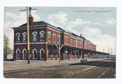 Title (ebay affiliate link): TOPEKA KS POSTCARD SANTA FE RAILROAD R.R. STATION DEPOT 1908