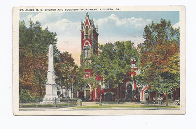 Title (ebay affiliate link): AUGUSTA GA POSTCARD MILITARY MONUMENT ST. JAMES CHURCH 1943
