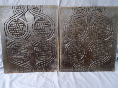 TWO 17TH CENTURY OAK, LARGE CARVED PANELS