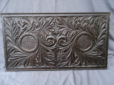 19TH CENTURY OAK, LARGE CARVED DRAW FRONT