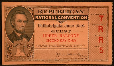 Title (ebay affiliate link): 1940 Republican National Convention Guest Ticket Philadelphia