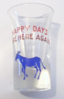 RARE VINTAGE OLD SCHOOL DEMOCRATIC SHOT GLASS HAPPY DAYS ARE HERE AGAIN NICE!