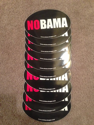 Title (ebay affiliate link): Set of 10 NOBAMA Anti Barack Obama Oval Stickers