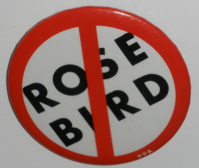 Title (ebay affiliate link): Anti-Rose Bird button -- California pro-death penalty 1978 or 1986