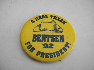 Title (ebay affiliate link): Old Political Campaign Pin Texas Lloyd Bensten 1992 for President