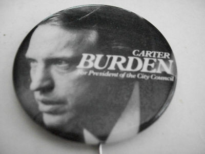 Old Political Campaign Pin New York Carter Burden 1969-78, Council Pres.