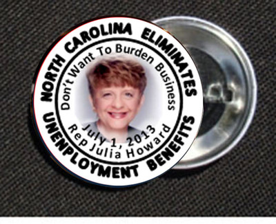North Carolina Eliminates Unemployment Benefits Pin-Back Button 1.5 in USA