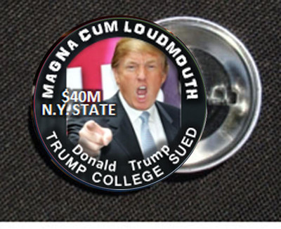 Title (ebay affiliate link): Magna Cum Loudmouth Trump College Sued Pin-Back Button 1.5 in USA