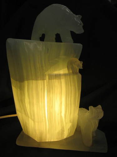 Massive 35lb Vintage Alabaster Polar Bear Lamp Light Sculpture