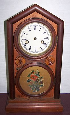 ANTIQUE ESTATE 1800'S INGRAHAM DORIC 8 DAY WOOD SHELF MANTLE CLOCK