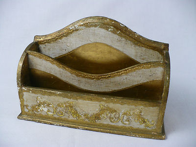 Vintage Wood Gold Toleware Tole Italian Florentine Desk Letter Holder Sorter Box