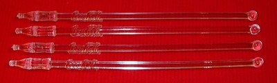 Title (ebay affiliate link): 4 MINT Coca Cola Clear Plastic Drink Stirrer Lot Coke Logo Bottle 6" Tall