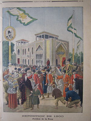OLD PRINT 1900 IRAN CHAH SHAH OF PERSIA PERSE PAVILLON OF UNIVERSAL EXPOSITION