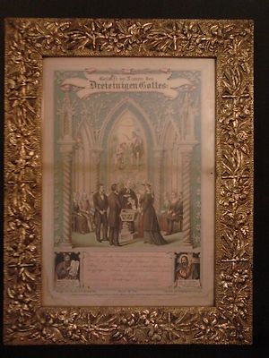 19th C. Baptism Certificate Victorian Gold Gilt Frame GERMAN