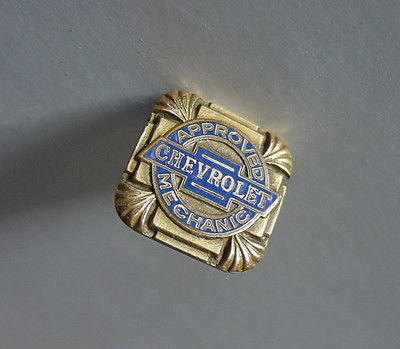 ART DECO 1930s Vintage CHEVROLET APPROVED MECHANIC Chevy Dealer Enamel Pin sign