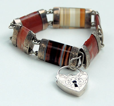 ANTIQUE Etched Sterling SCOTTISH AGATE Bracelet