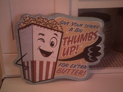 Title (ebay affiliate link): LOBBY INTERMISSION SNACK METAL SIGN POPCORN VINTAGE COKE MOVIE THEATER