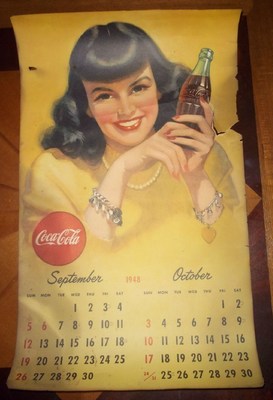 Title (ebay affiliate link): Vintage 22"x13" September October 1948 Coca Cola Pin Up Girl Calendar Page
